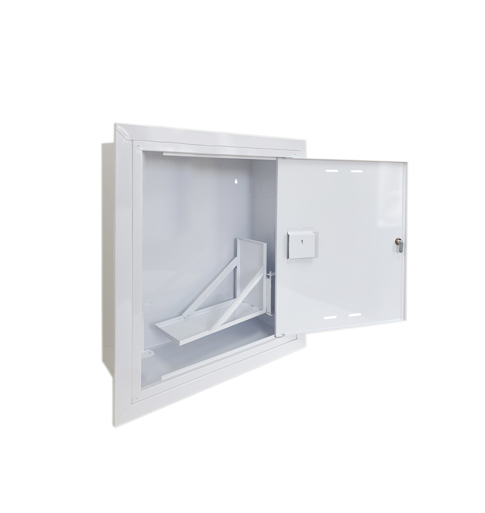 • Предназначен для размещения комплекта пожарного крана Dy50 или Dy65 (с угловым клапаном).
