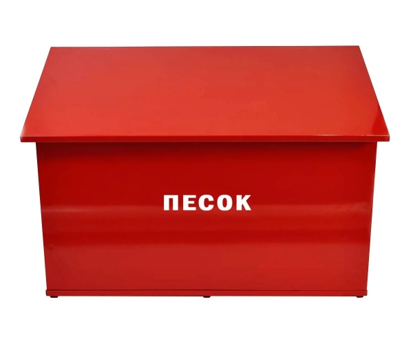Песок — отличное средство тушения легковоспламеняющихся веществ и нефтепродуктов, но его необходимо где-то хранить. Для этого используют ящики разного объема (от 0,12 м3, в зависимости от места его расположения).