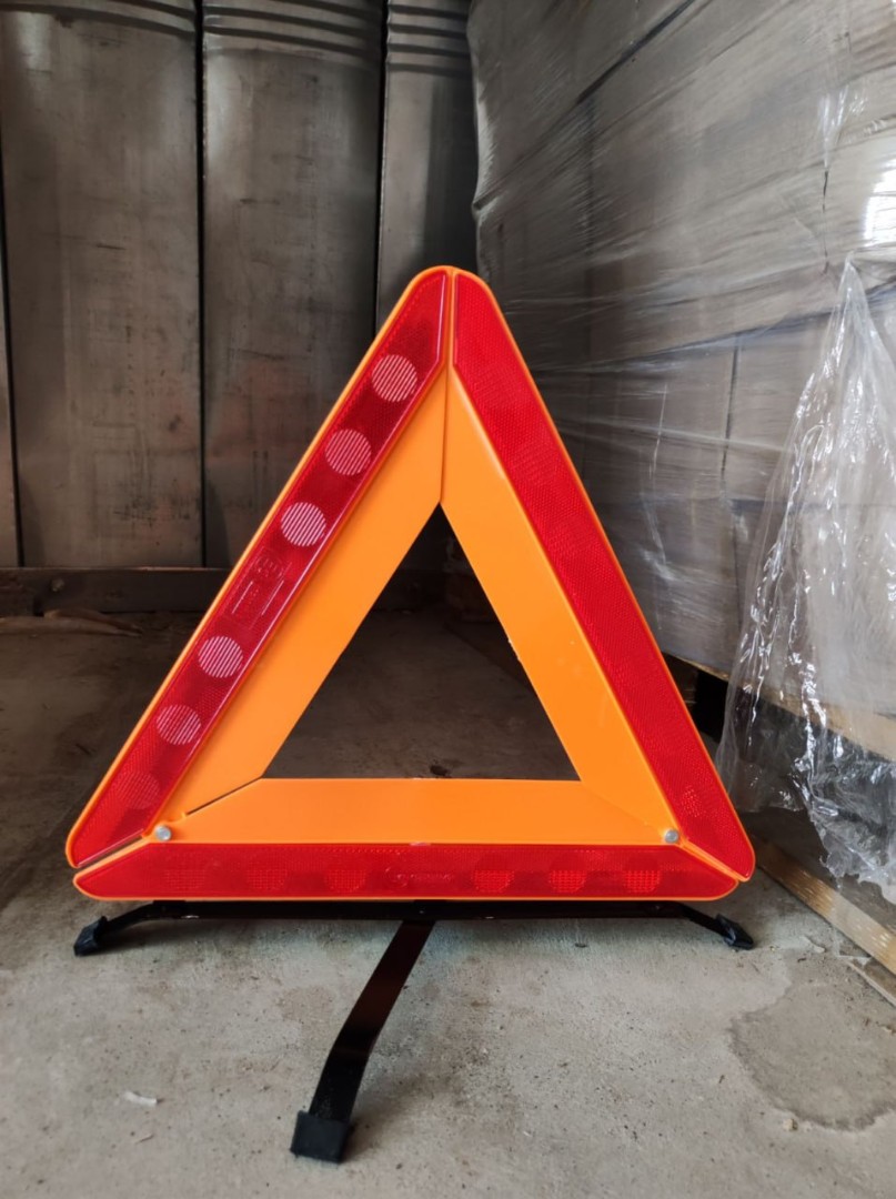 Это компактный переносной световозвращающий треугольник, изготовленный из стеклопластика красного цвета;